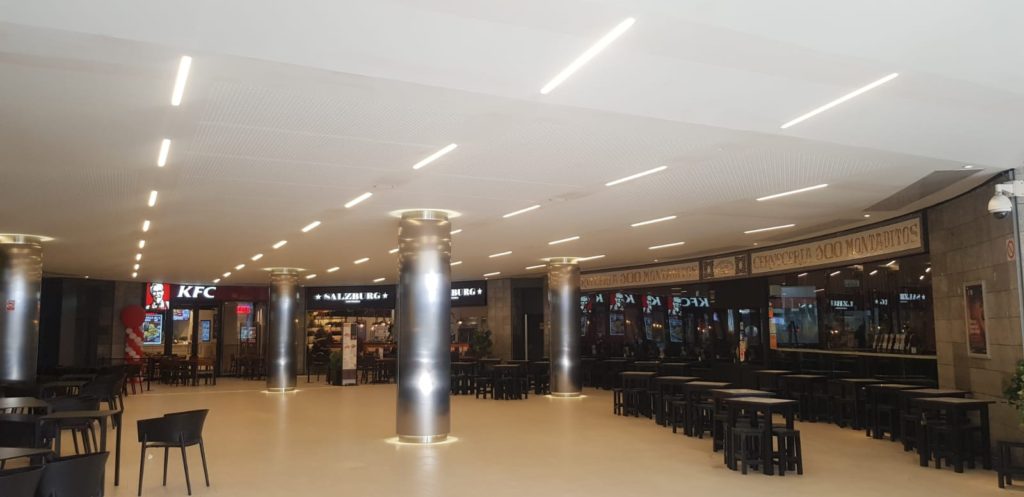 Hemos realizado los falsos techos, utilizando placas fonoabsorventes para mejorar la acústica del espacio.
